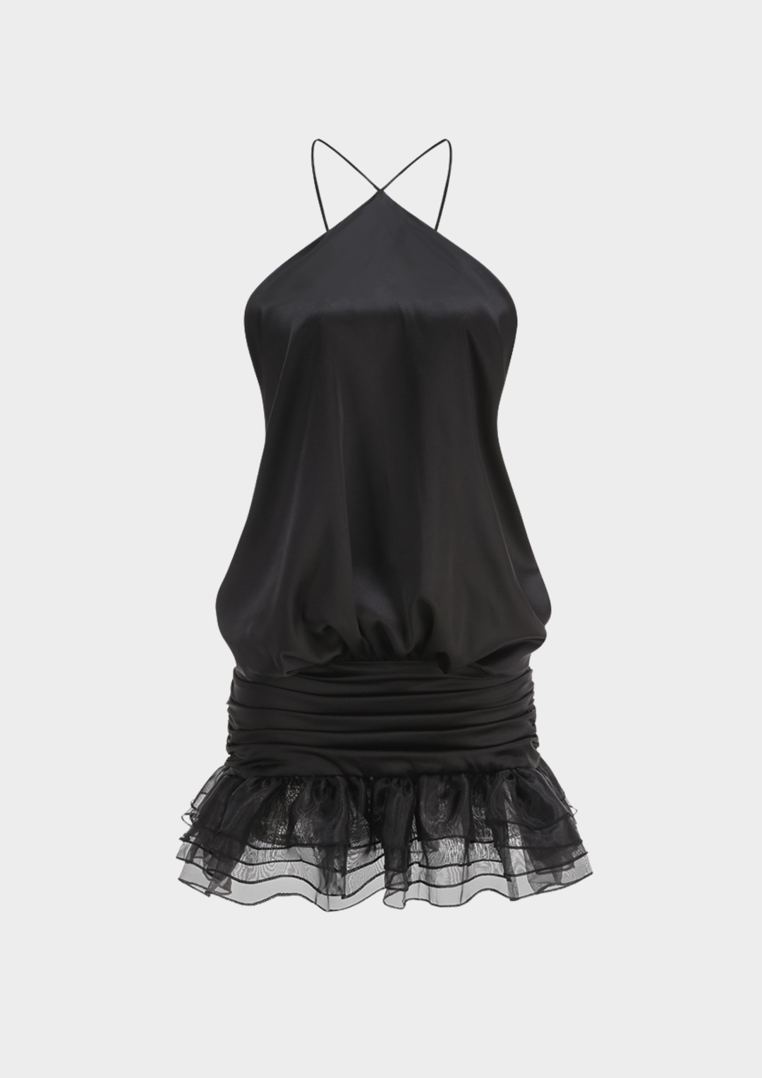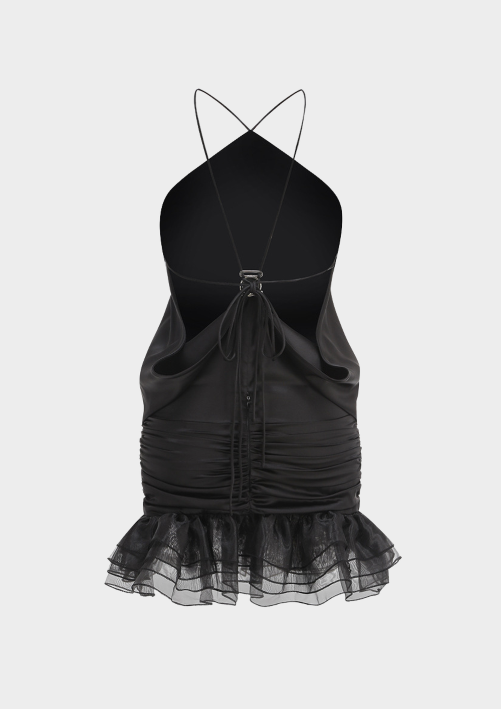 Noir Whisper Backless Ruffle Mini Dress