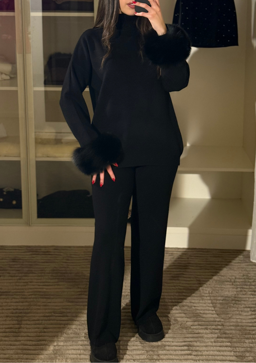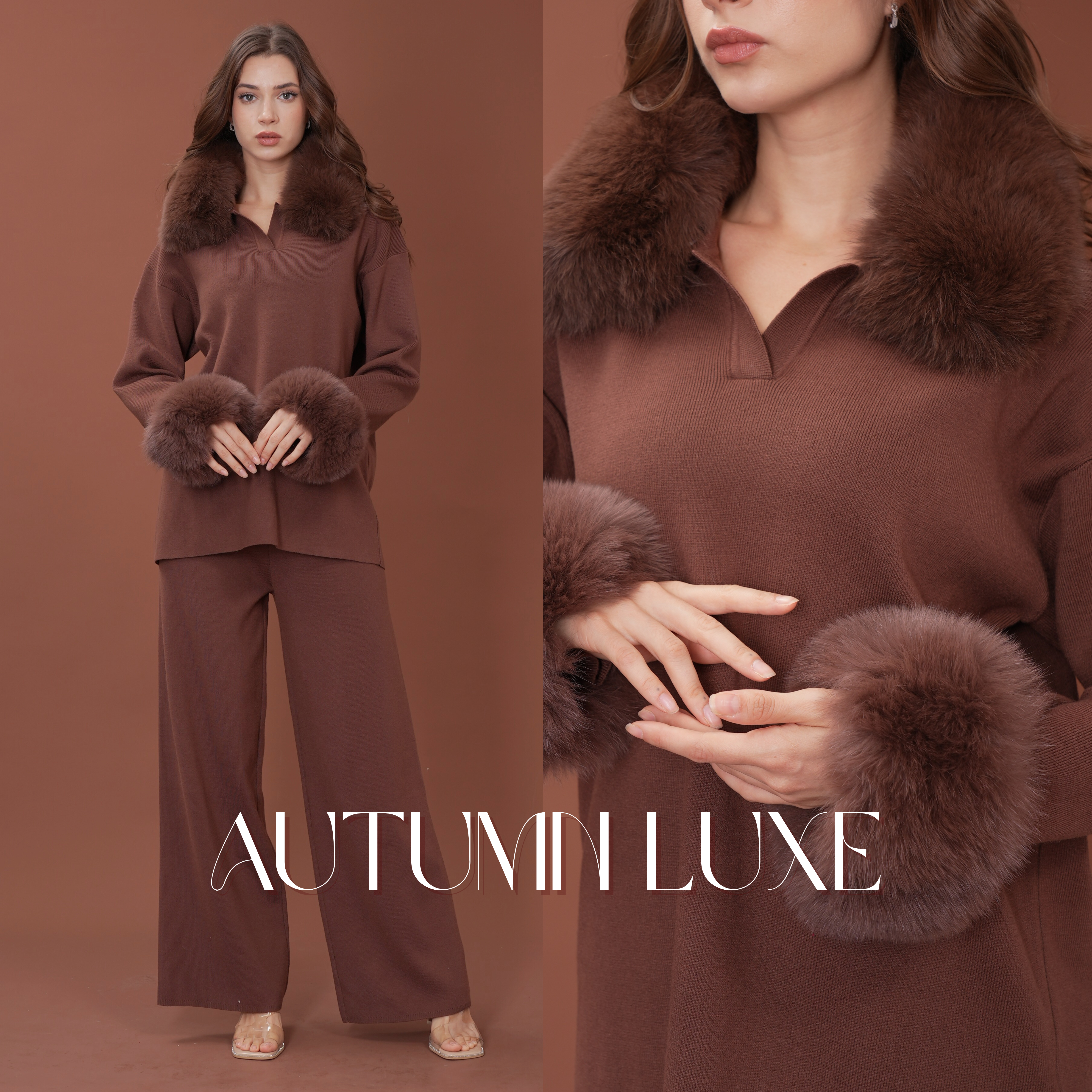 Velora Real Fox Fur Knit Lounge Set - Fur Cuff Edition