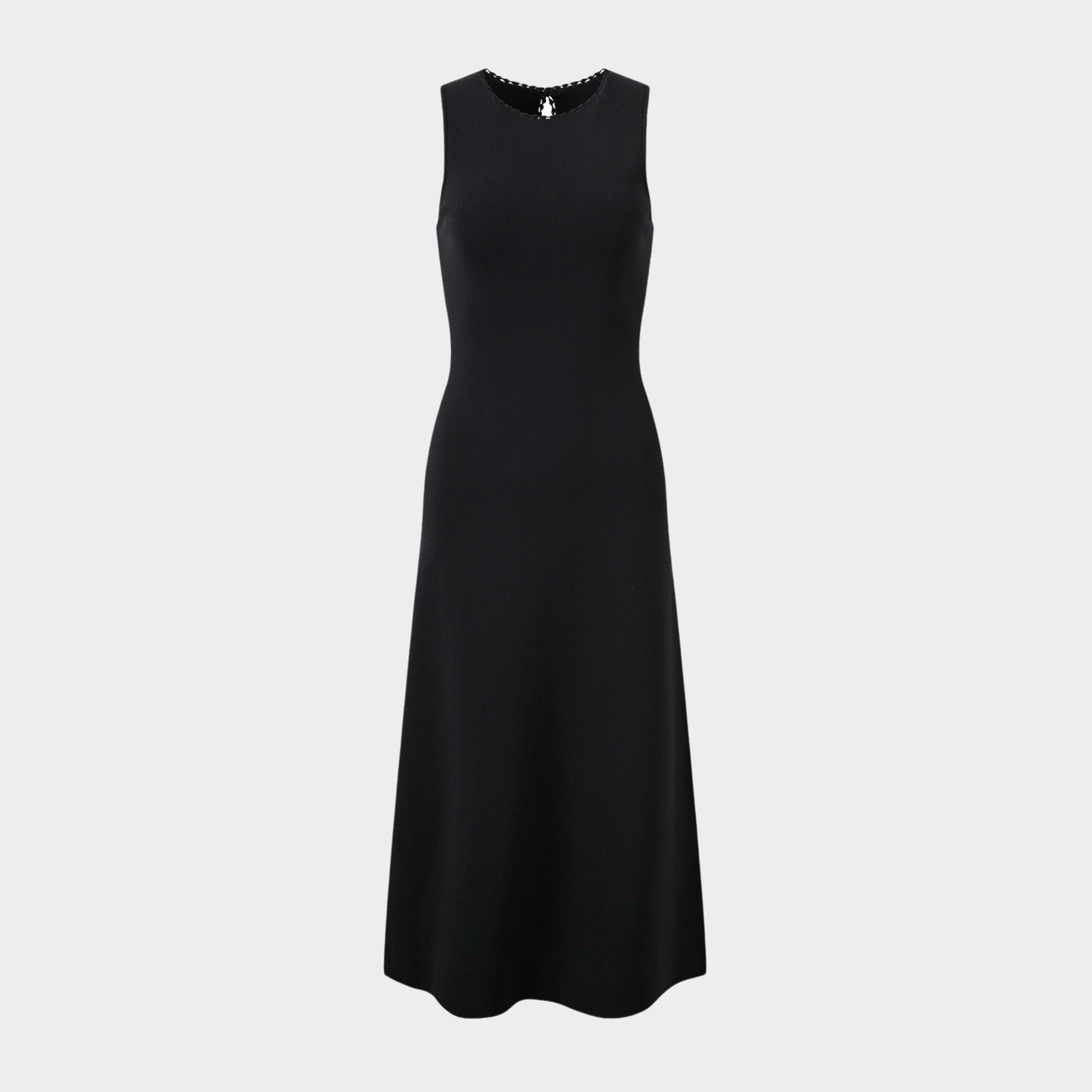 Elegant round neck, sleeveless design.