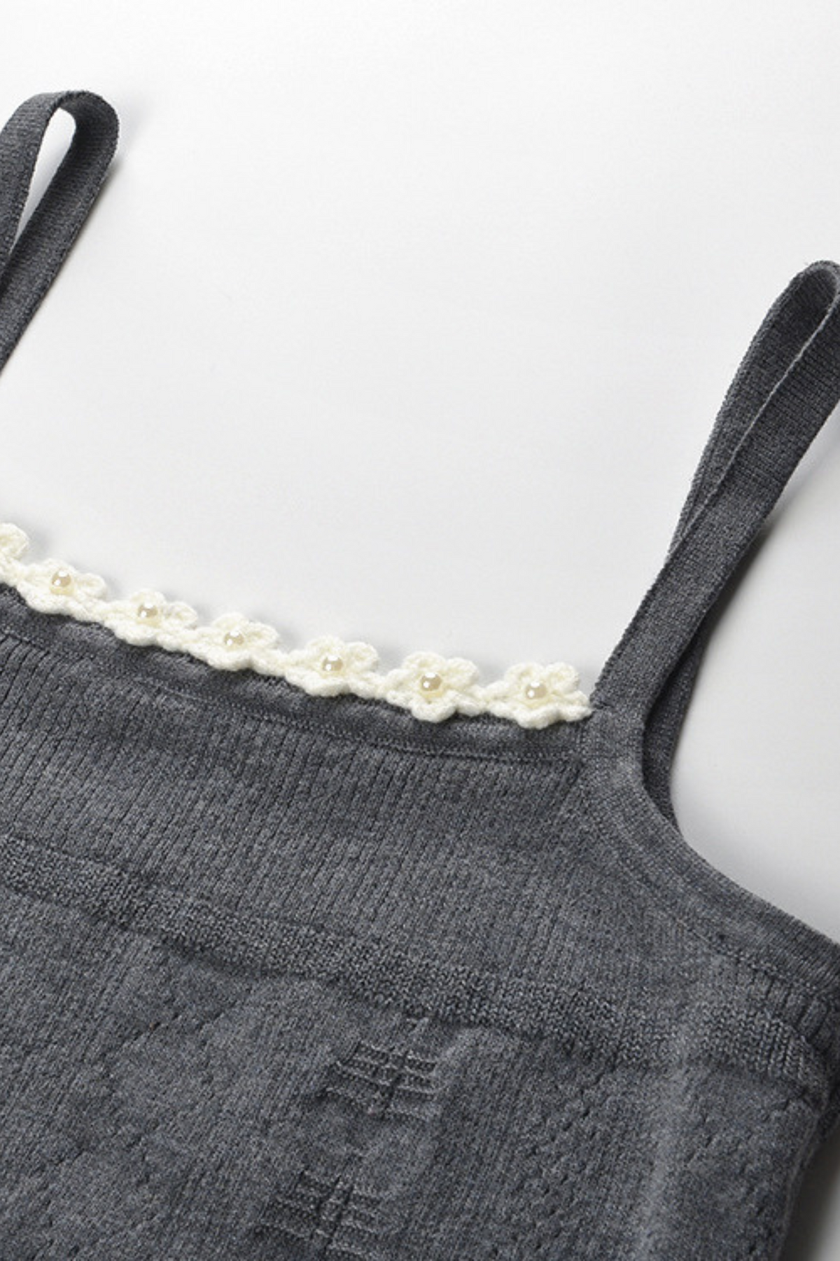 Grey Floral Pearl Knit Camisole Top