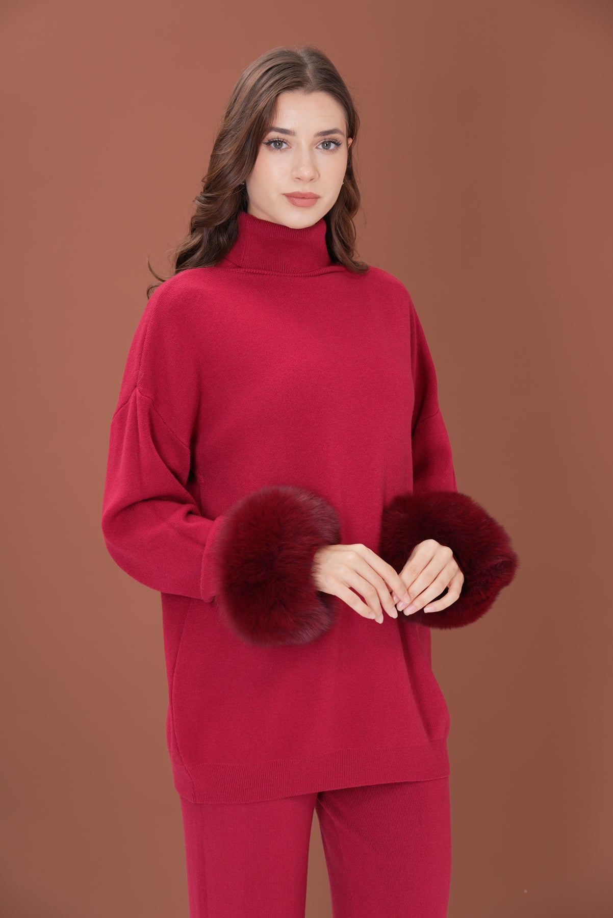 Ivy Real Fox Fur Turtleneck Knit Lounge Set
