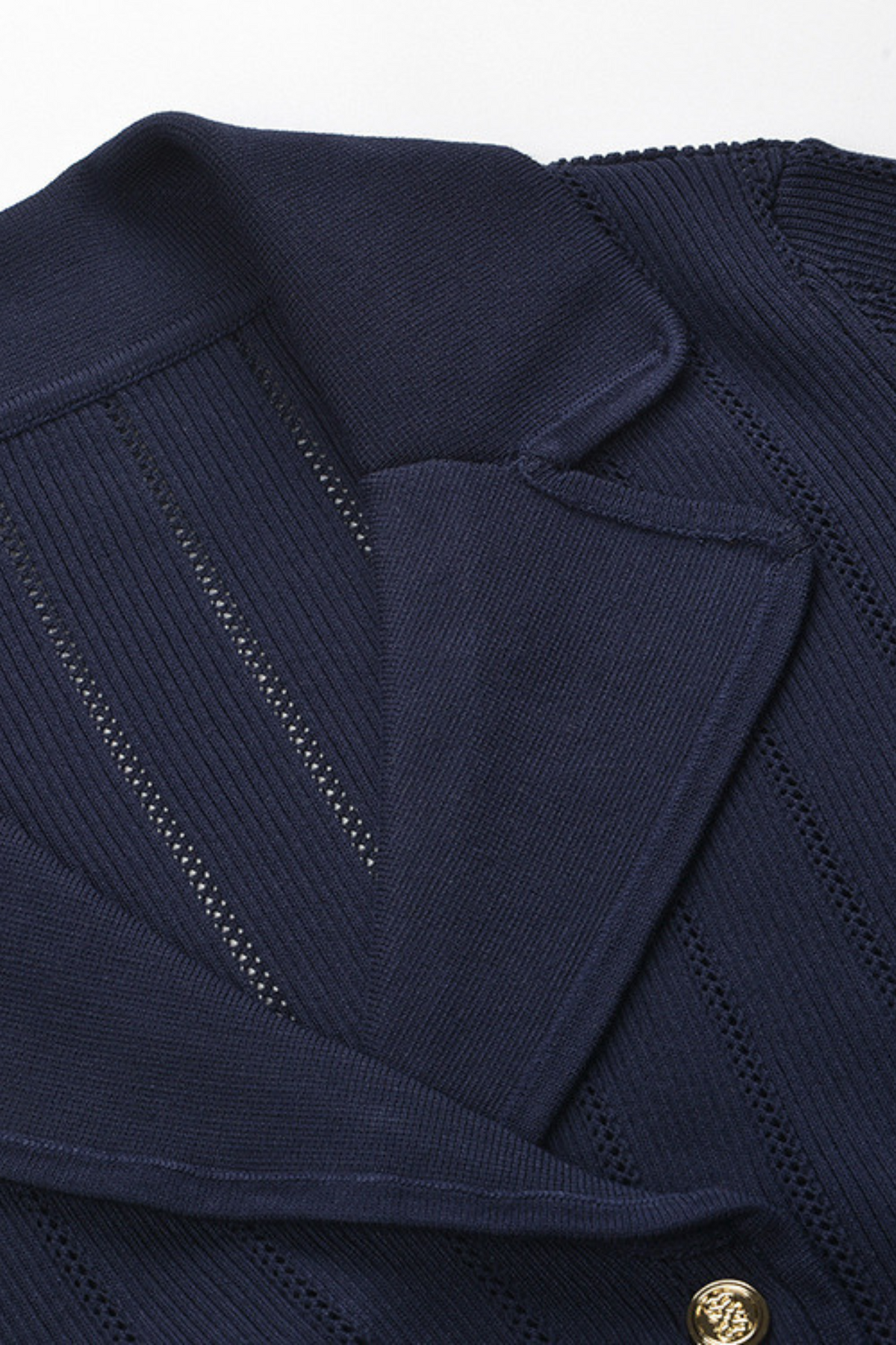 Elegant double-breasted design with gold-tone embossed buttons for a luxurious finish