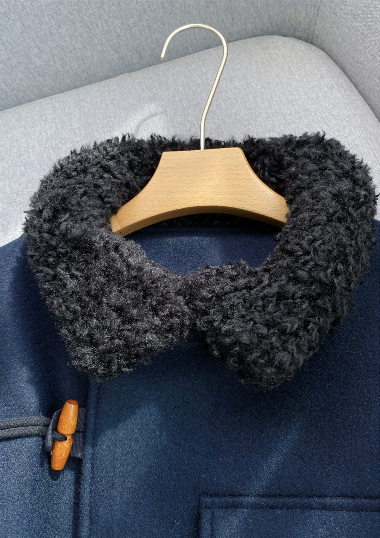 Wrap up in effortless winter charm with our Nyla jacket, crafted from a warm wool-blend fabric in deep navy. Designed with a plush black fleece collar for extra coziness, this statement piece blends modern street style with classic toggle fastening details.