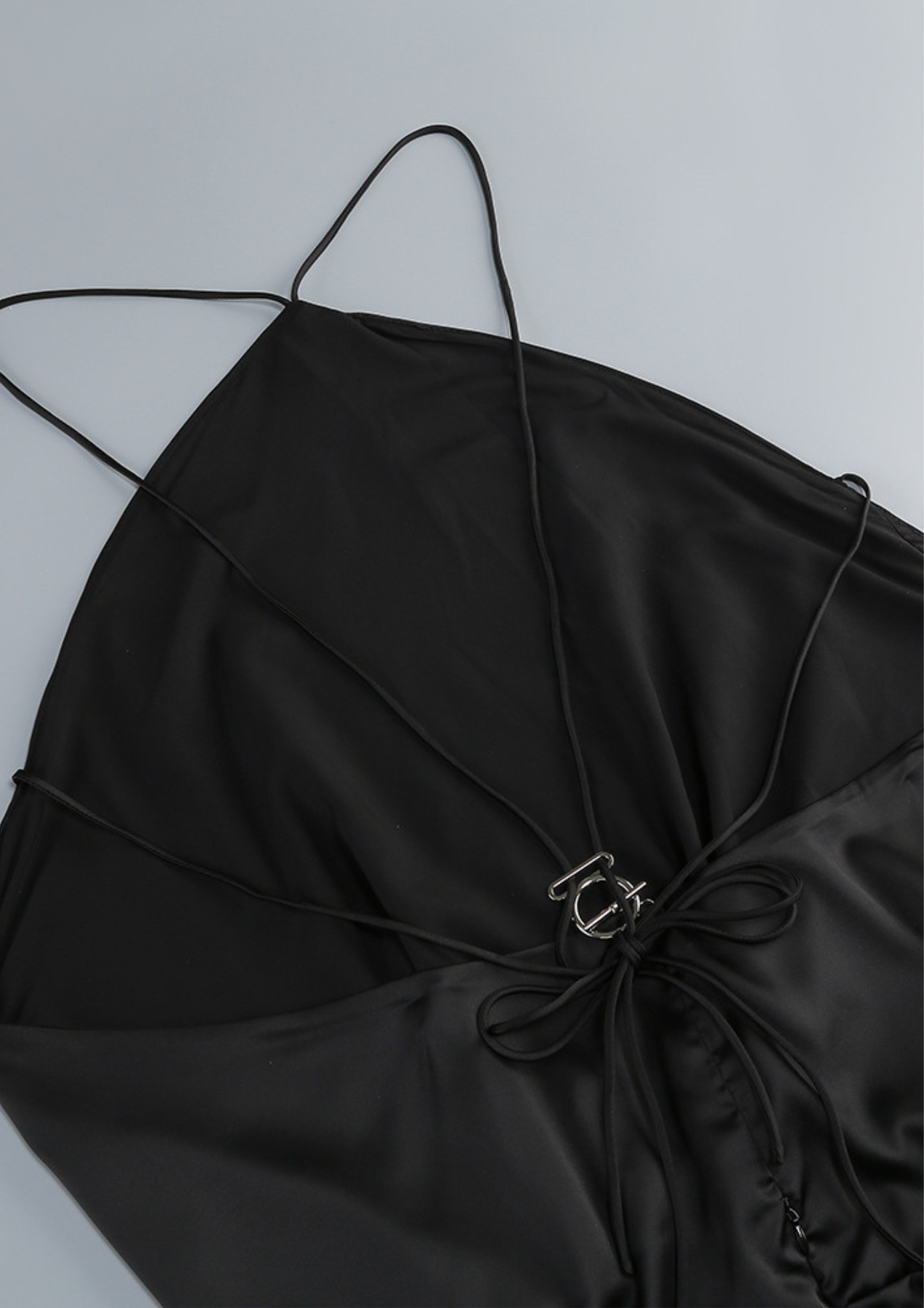 Wear hair in a low bun or sleek ponytail to showcase the halter neckline and back detailing.