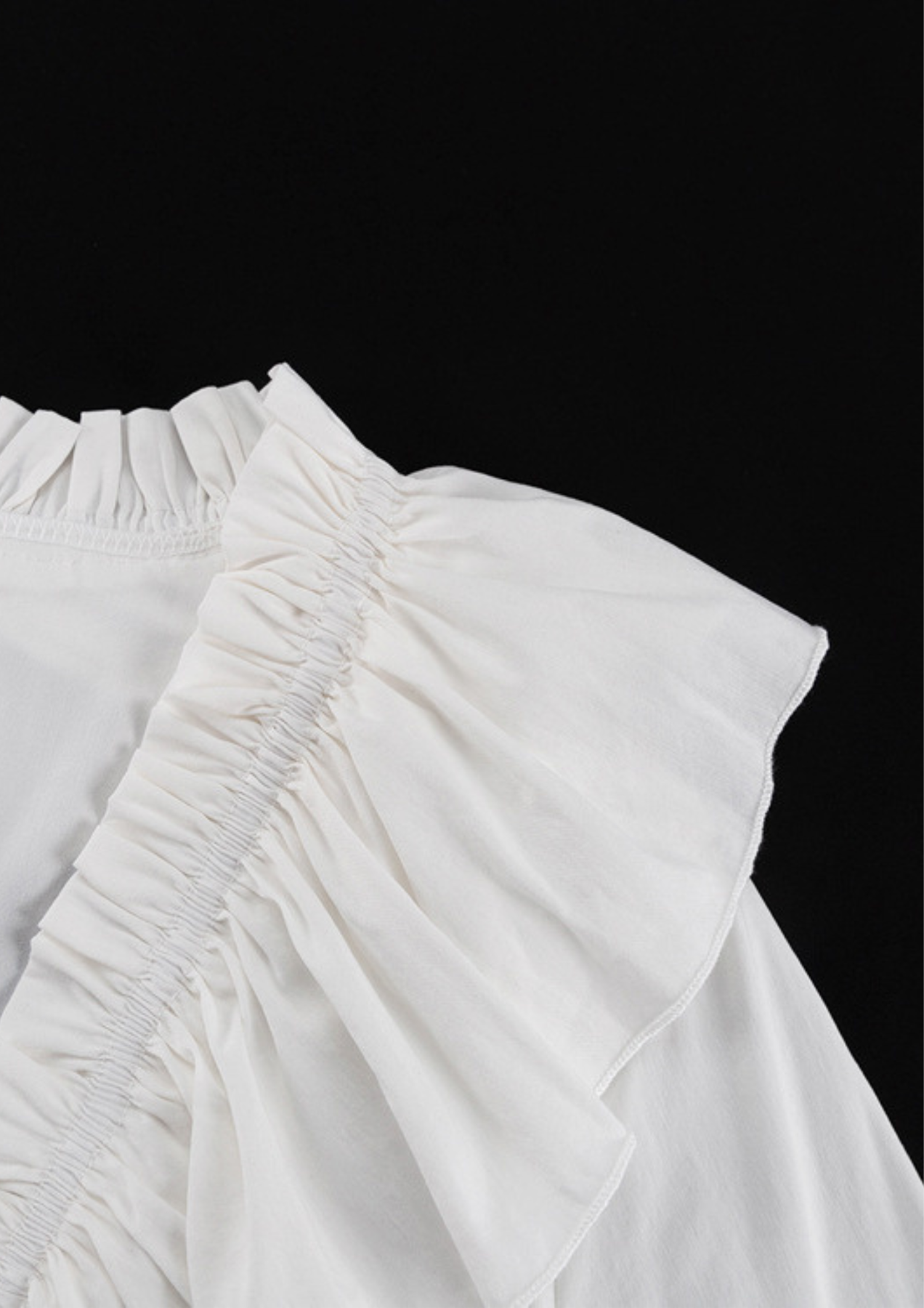 A romantic, ethereal mini dress designed with soft movement and vintage-inspired charm. Crafted in a lightweight, flowy fabric, this piece features a deep V-neckline framed with cascading ruffles and delicate lace-up detailing at the front. The cinched waist creates a flattering silhouette, while the tiered skirt adds airy volume and graceful flow. Long balloon sleeves with flared ruffle cuffs enhance the dreamy, feminine aesthetic. Finished in a timeless soft ivory tone, it embodies effortless elegance with a bohemian touch.