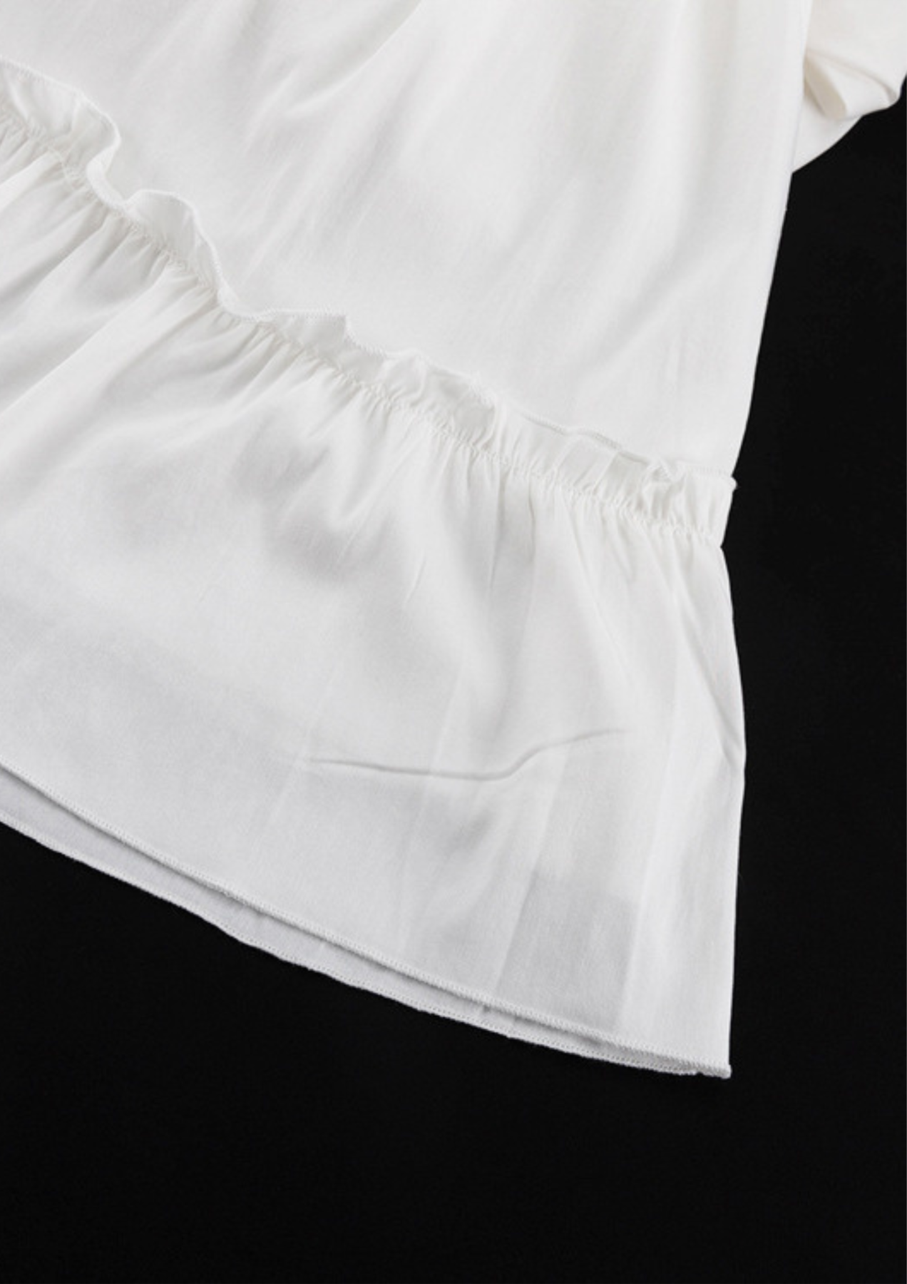 Wear with loose waves or soft curls to complement the flowing ruffle details.