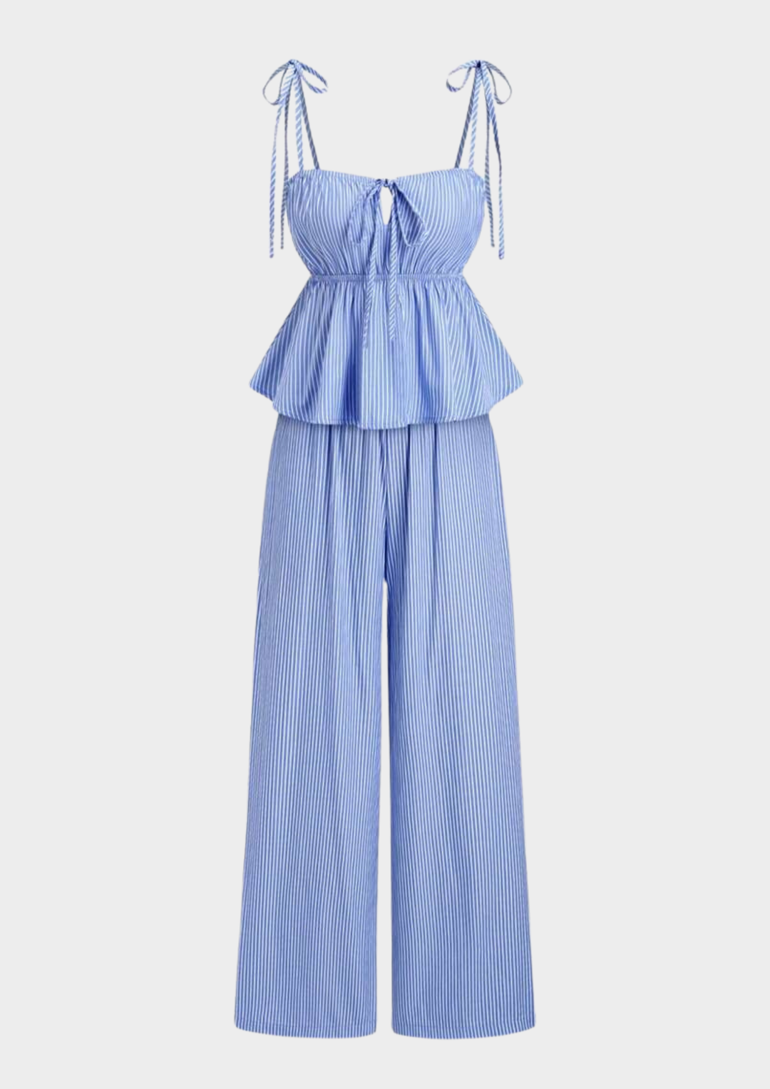 Viscose Knit Sleeveless Vest LaceUp Wide Leg Set