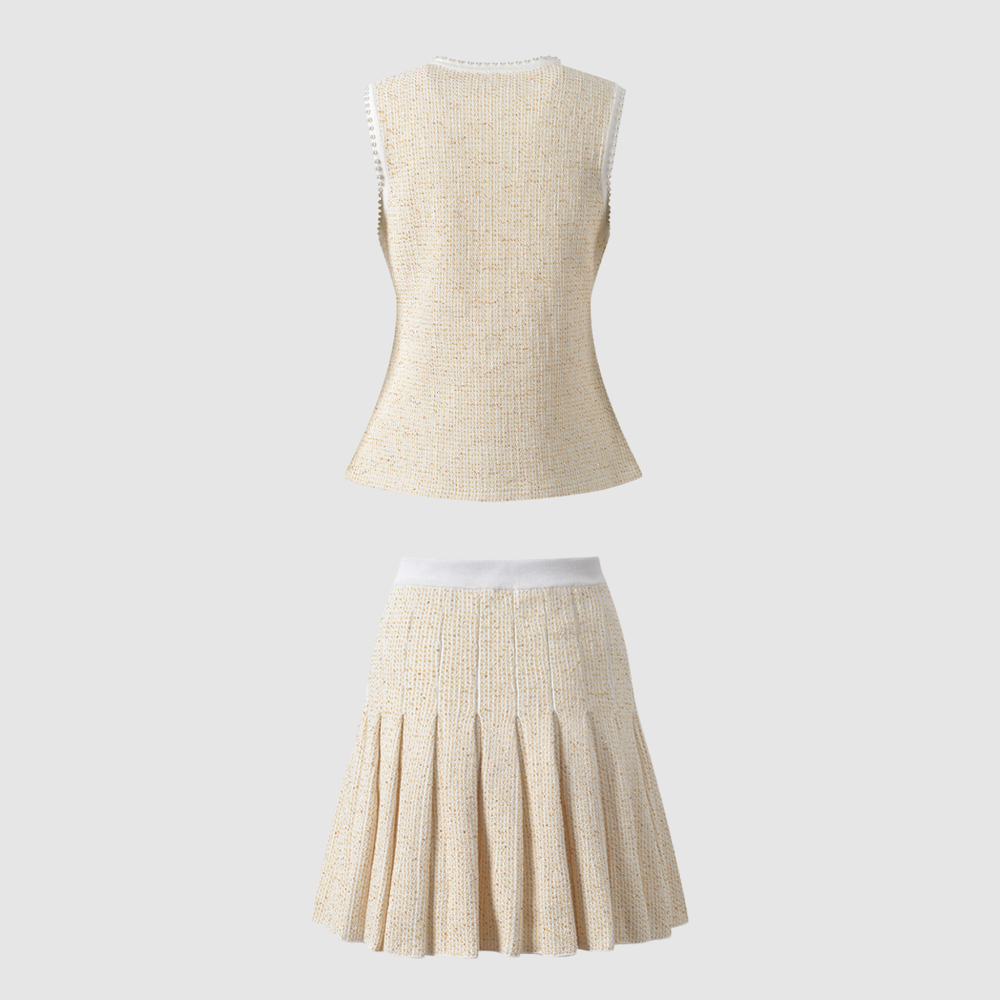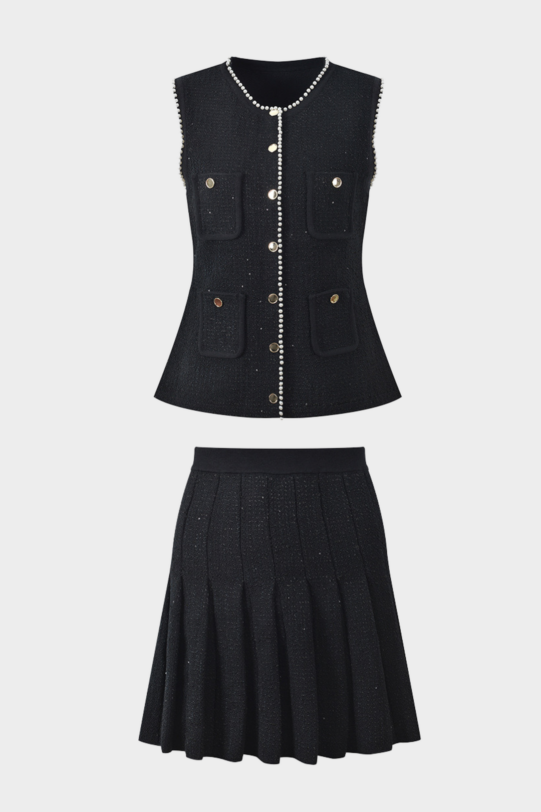 Luxury Pearl Trimmed Beaded Vest & Pleated Skirt Set