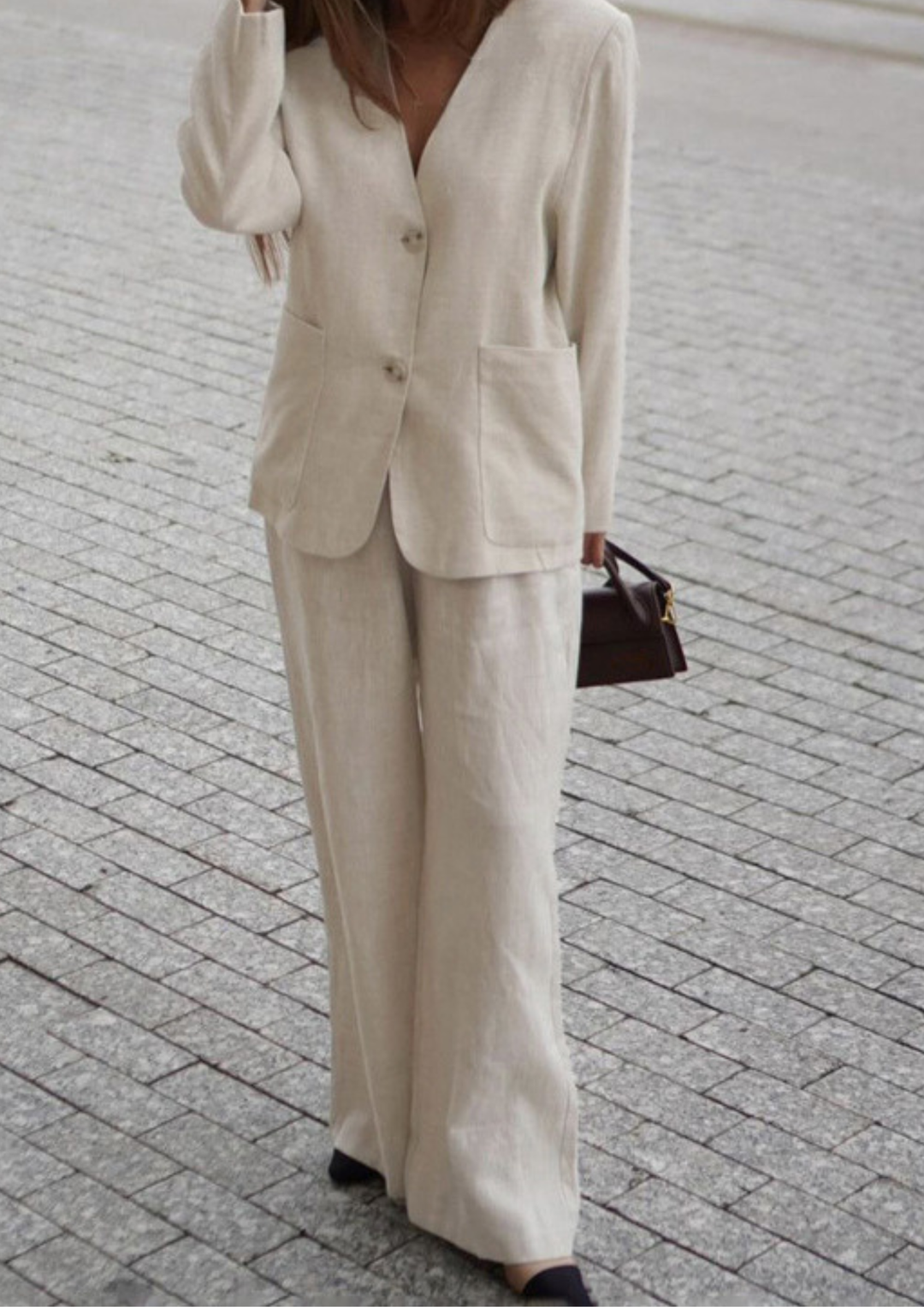 Tailored Blazer Sheer Lace Wide Leg Trouser Set