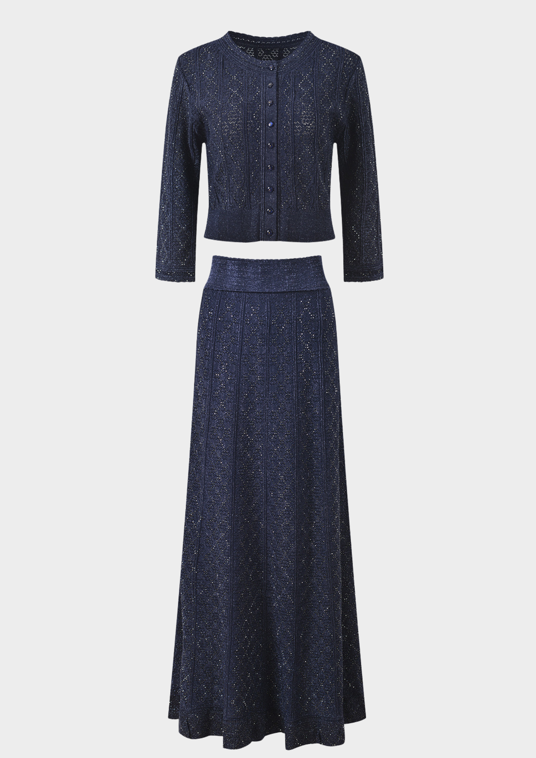 Lily – Knit Elegant Cardigan Top & High Waist Maxi Skirt Set