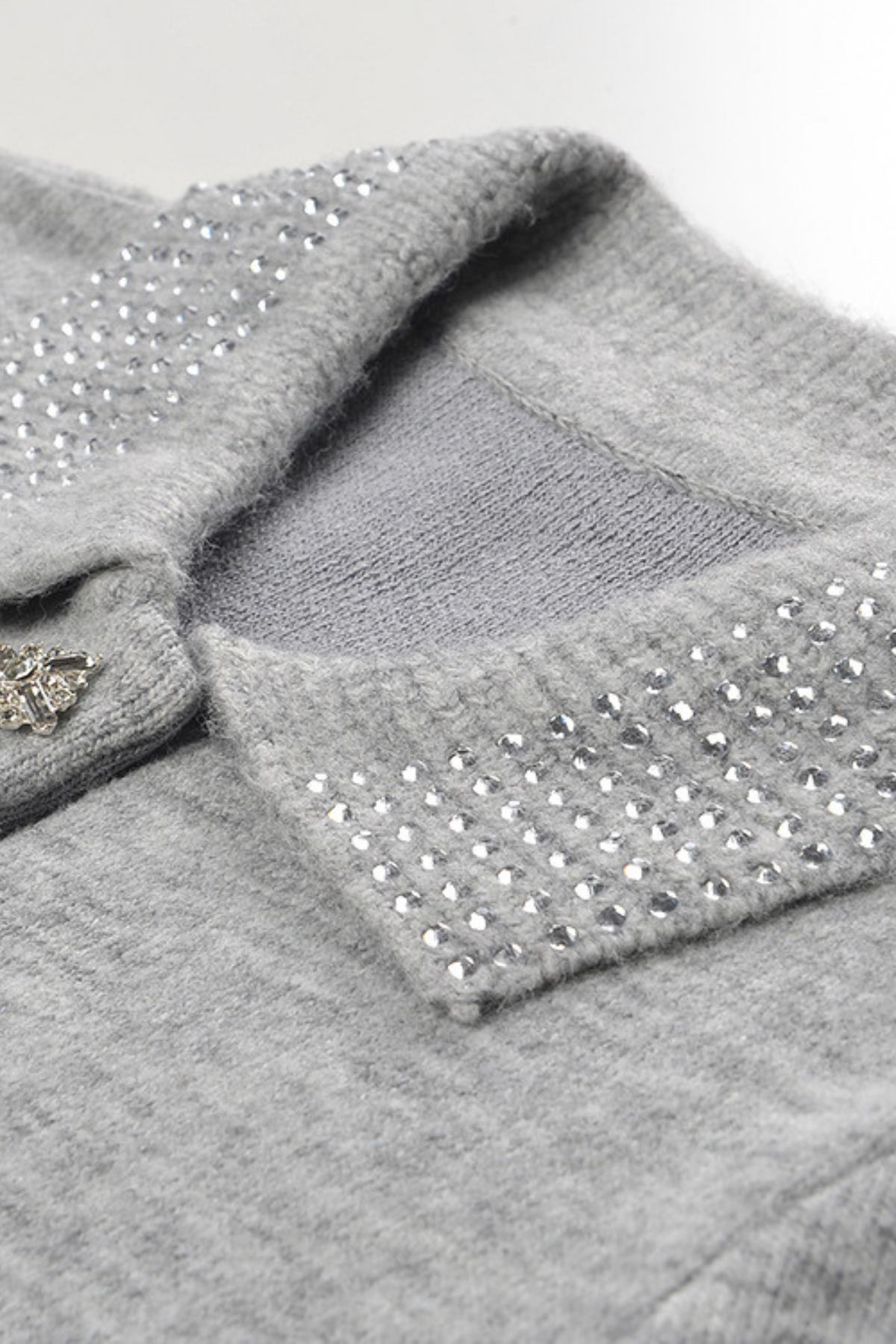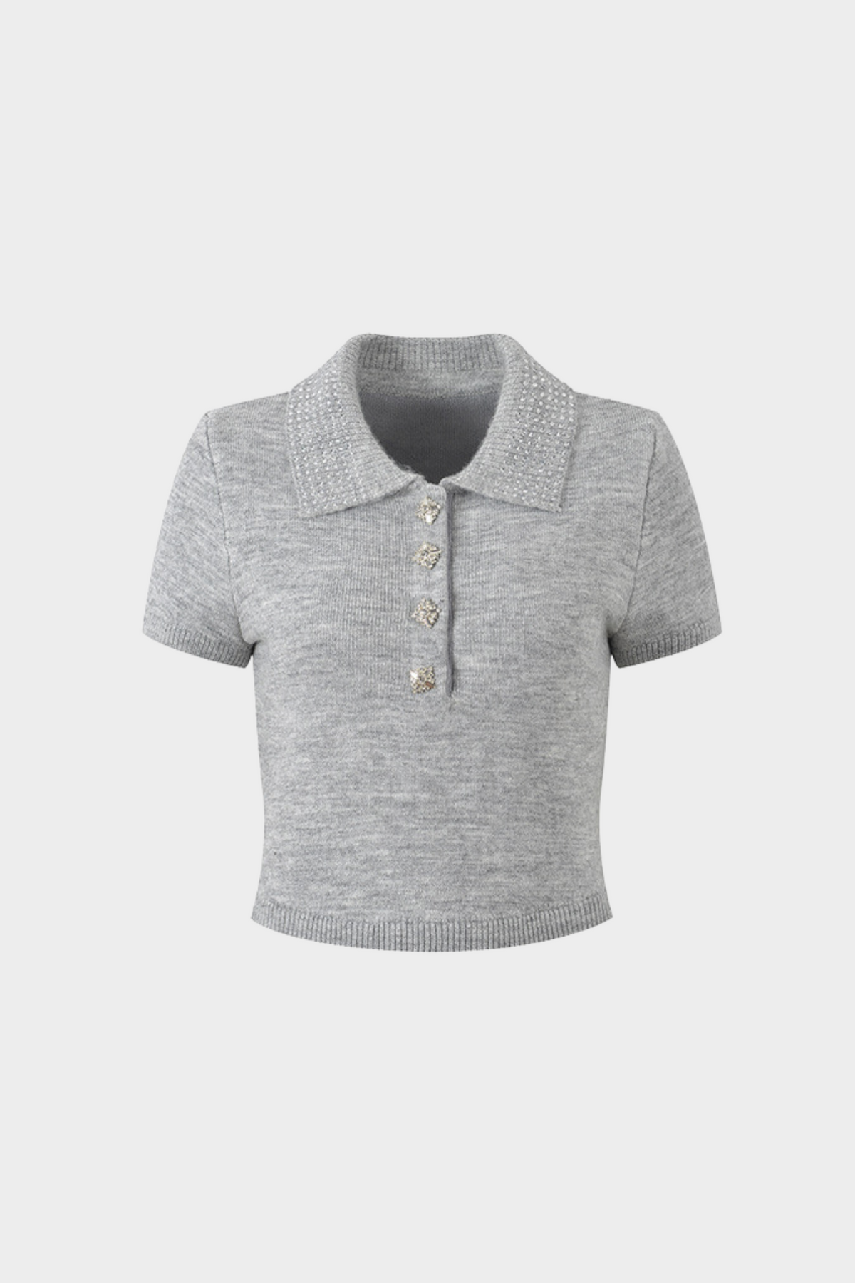 Classic polo collar fully embellished with sparkling crystal studs for a touch of shine