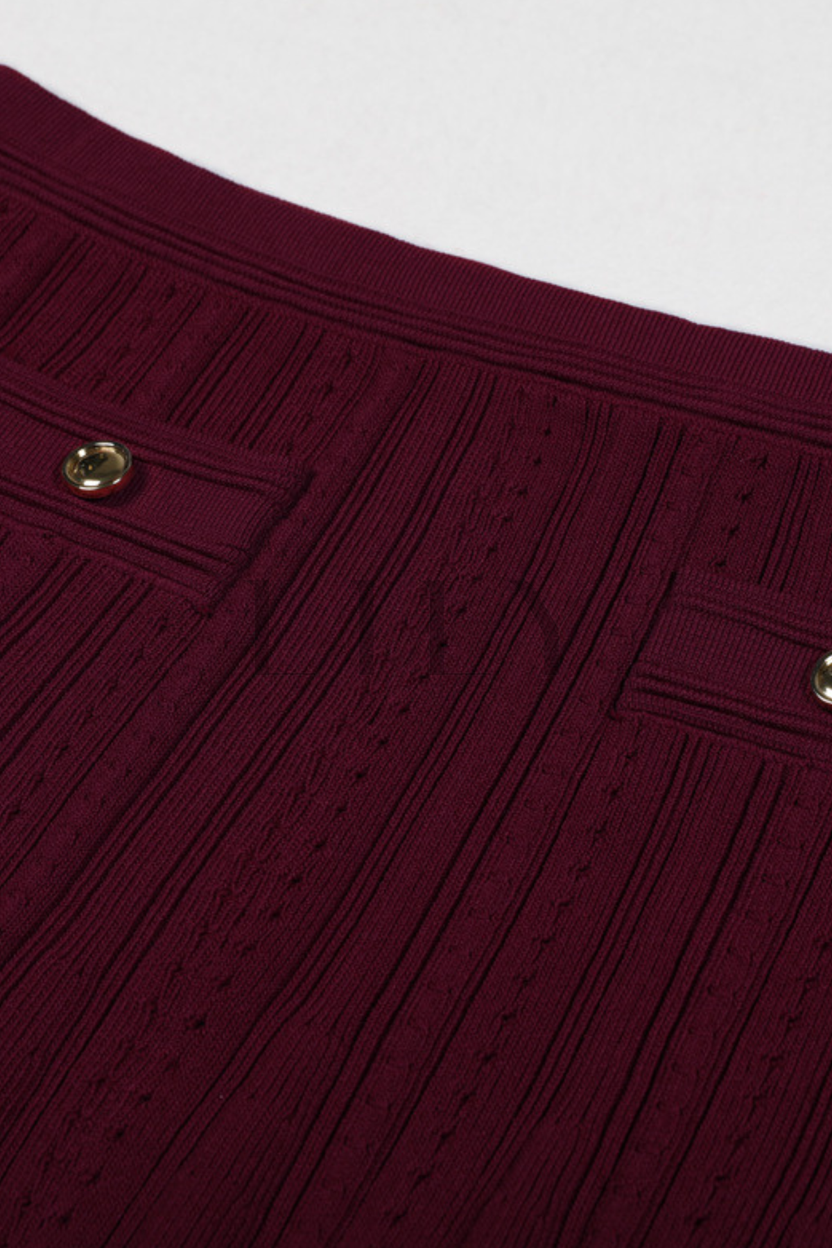 Complete 3-piece knit ensemble including long-sleeve cardigan, sleeveless top, and mini skirt.