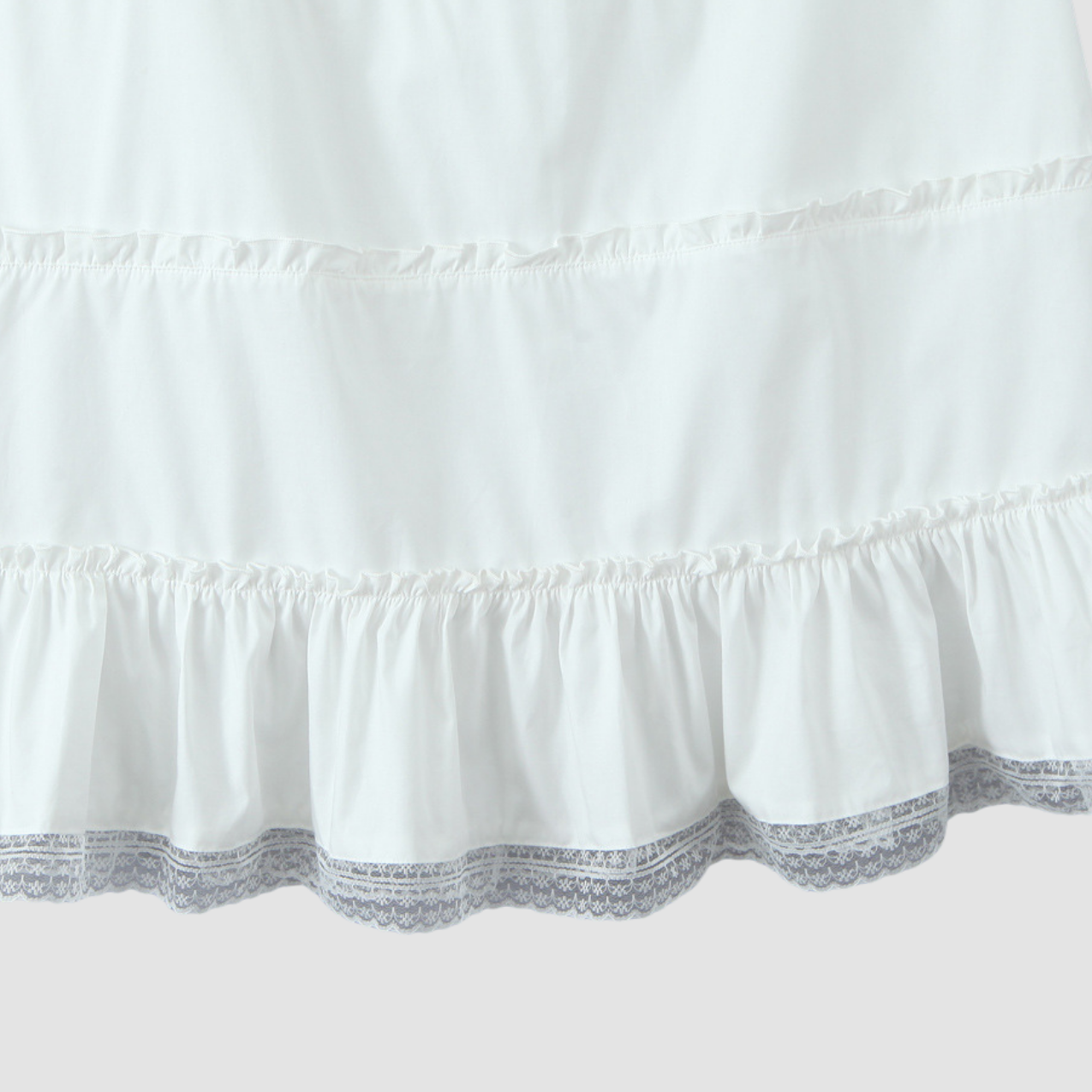 Fitted bodice with scalloped lace trim and built-in cups for gentle lift