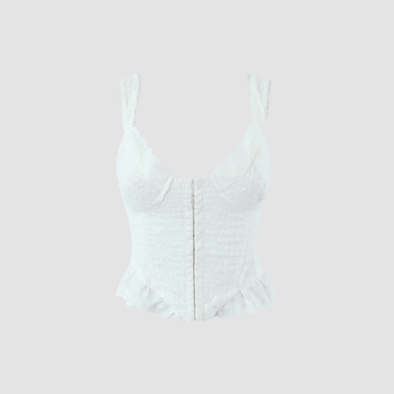 White floral eyelet embroidery throughout