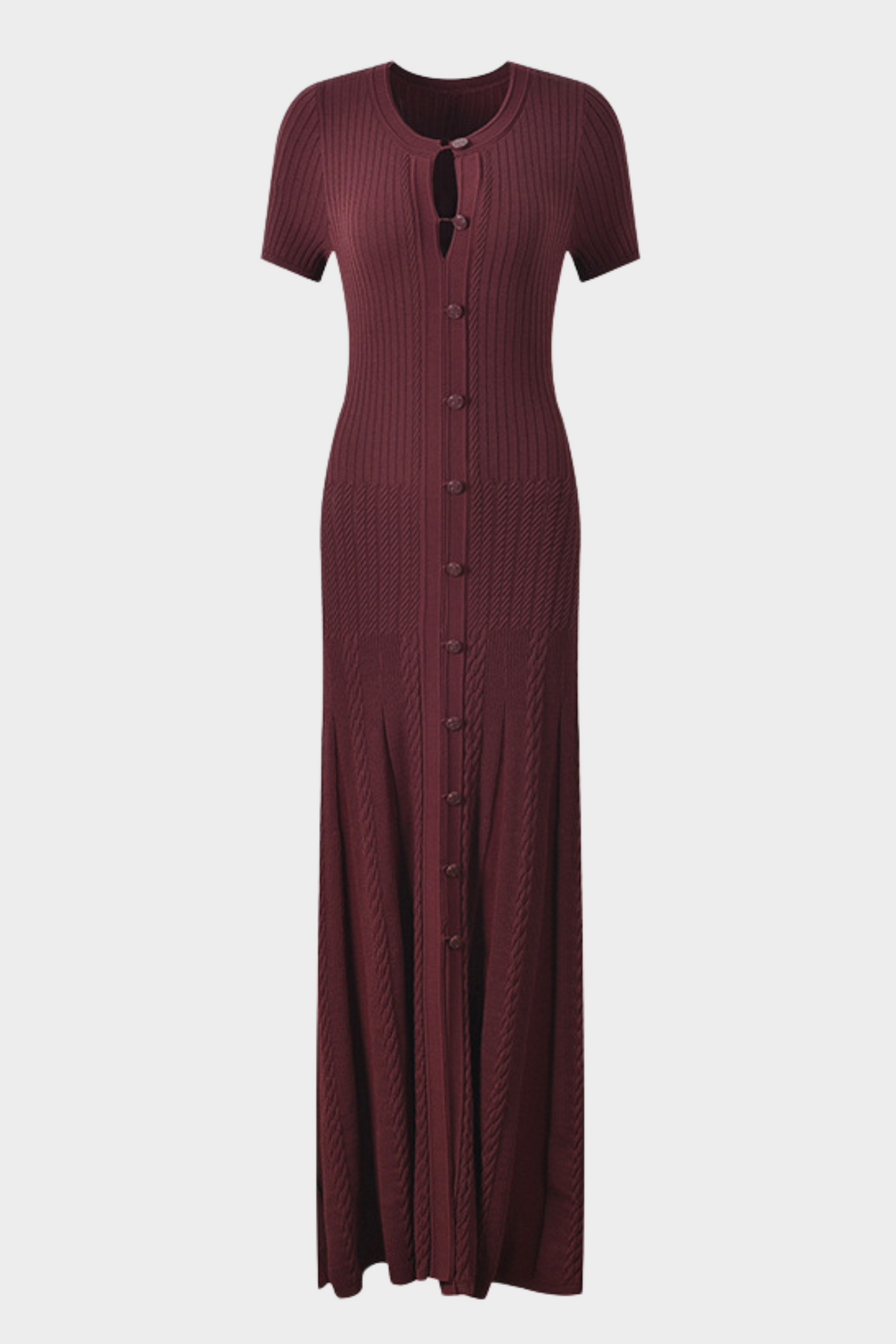 Luxe Viscose Button Down Knit Maxi Dress In Burgundy