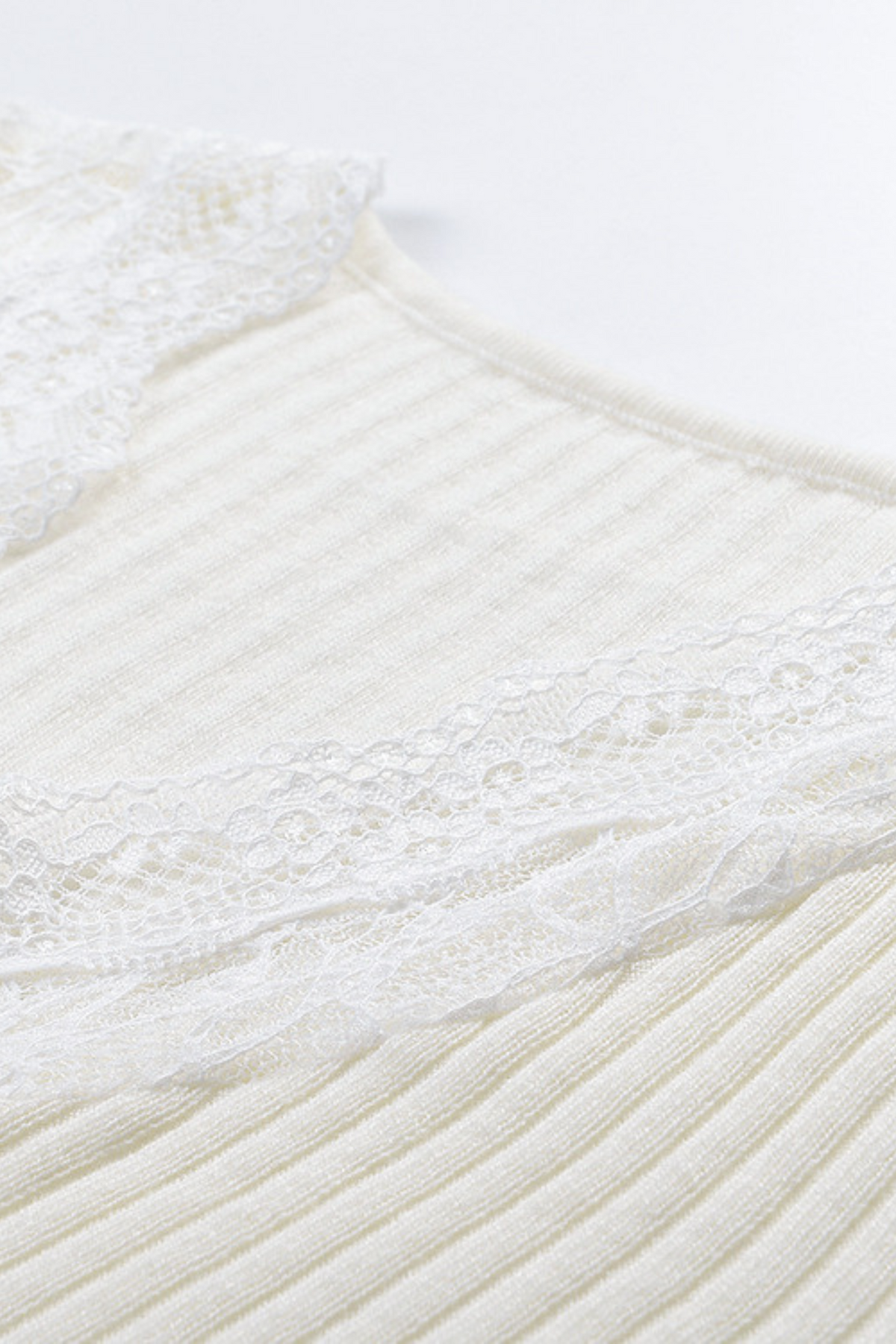 Elegant V-neckline with delicate lace splicing for a soft, feminine touch