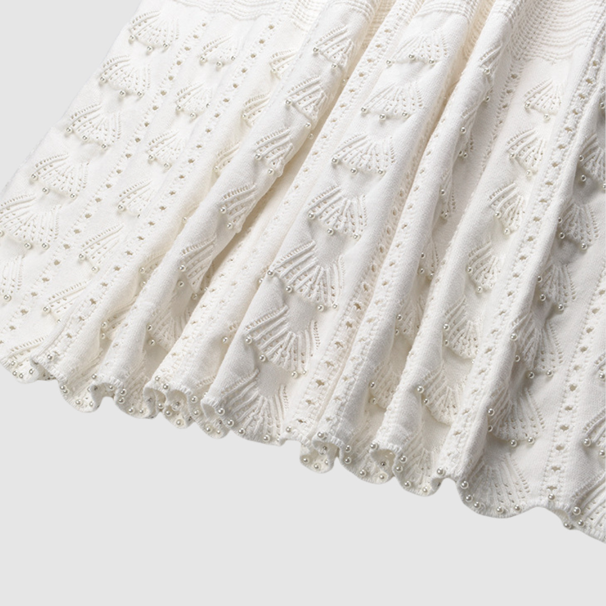 • Delicate pearl beading around the neckline, sleeves, and hem